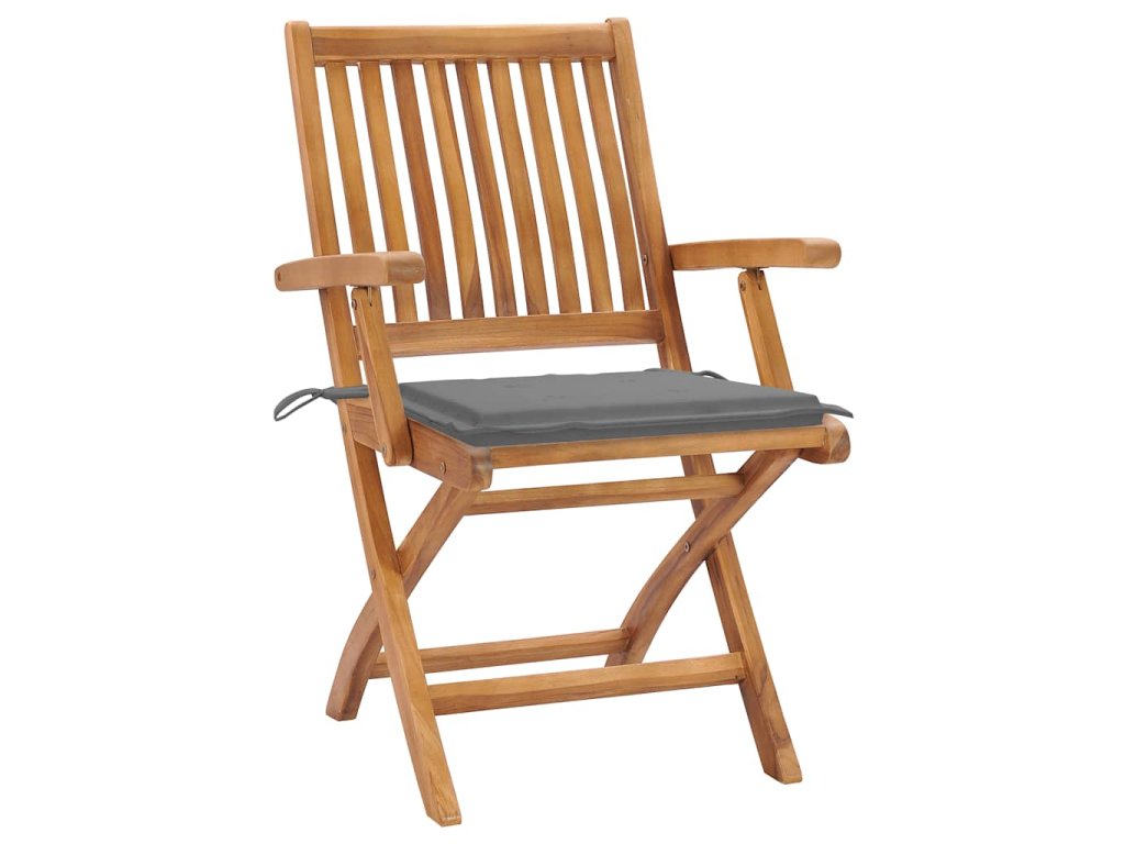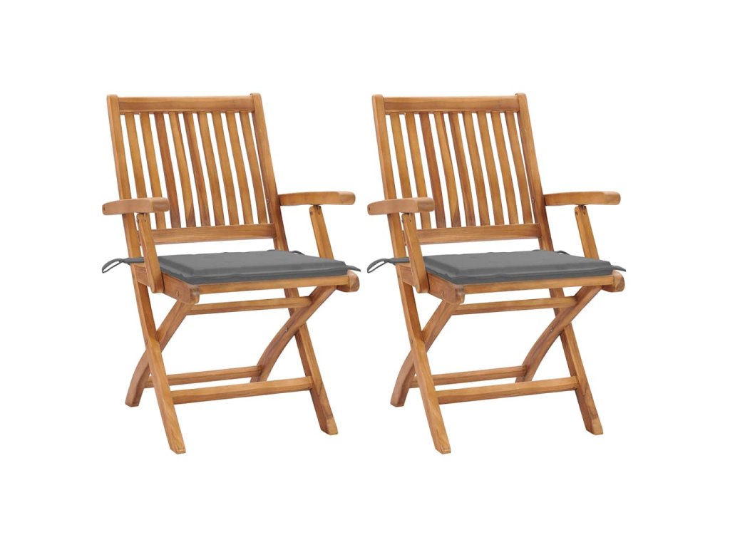 vidaXL Záhradné stoličky 2 ks sivé podložky teakový masív