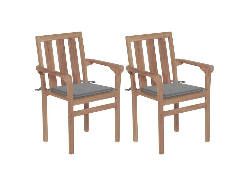 vidaXL Záhradné stoličky 2 ks sivé podložky teakový masív