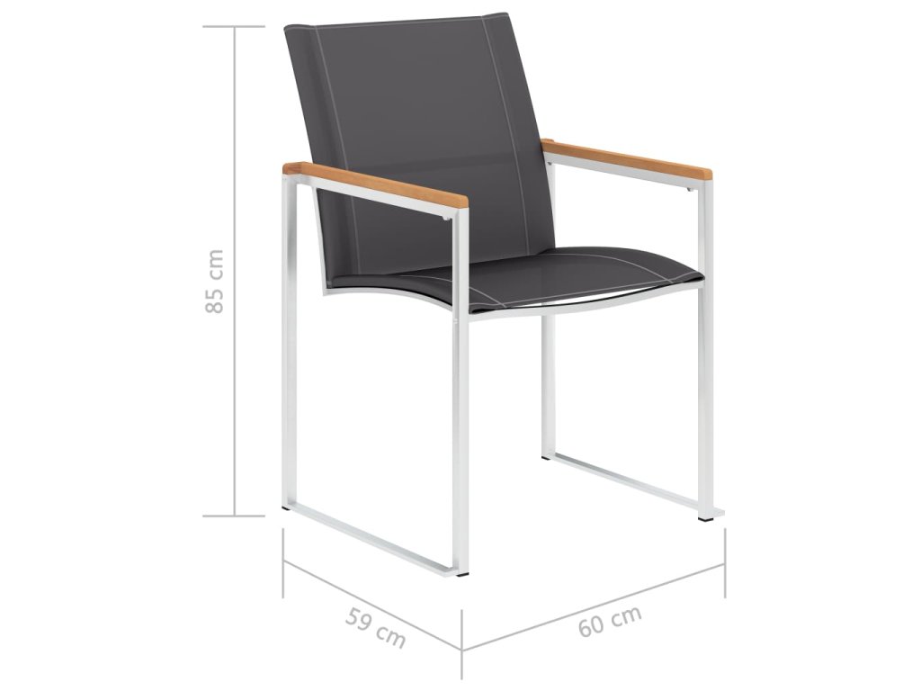 vidaXL Záhradné stoličky 2 ks sivé textilén a nehrdzavejúca oceľ
