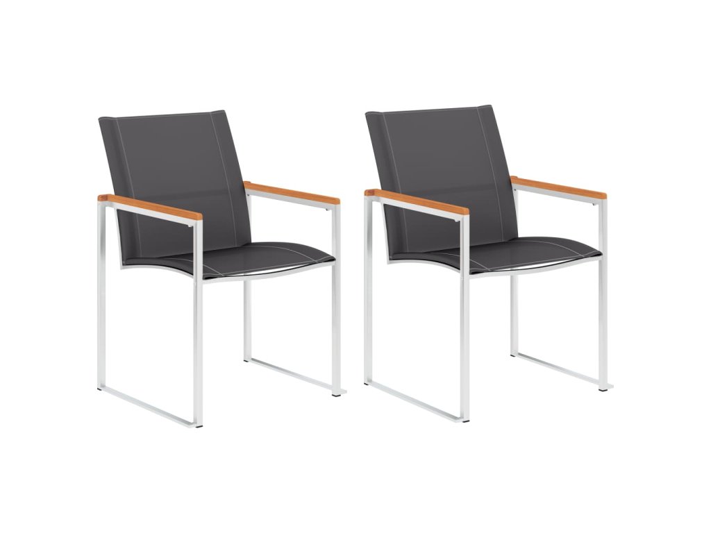 vidaXL Záhradné stoličky 2 ks sivé textilén a nehrdzavejúca oceľ