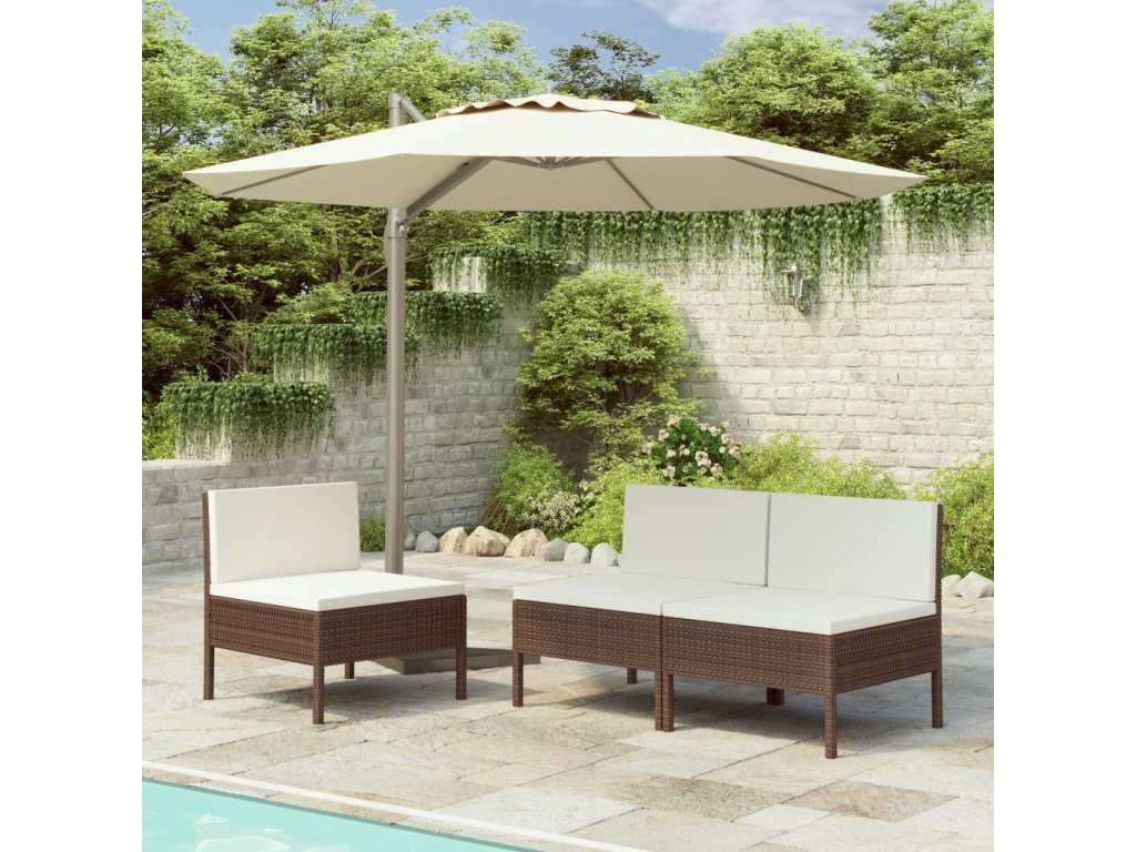 vidaXL Záhradné stoličky 3 ks s podložkami, polyratan, hnedé