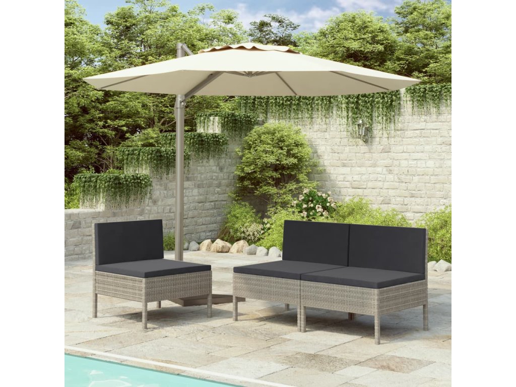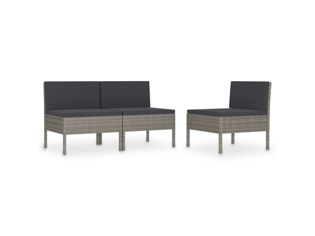 vidaXL Záhradné stoličky 3 ks s podložkami, polyratan, sivé