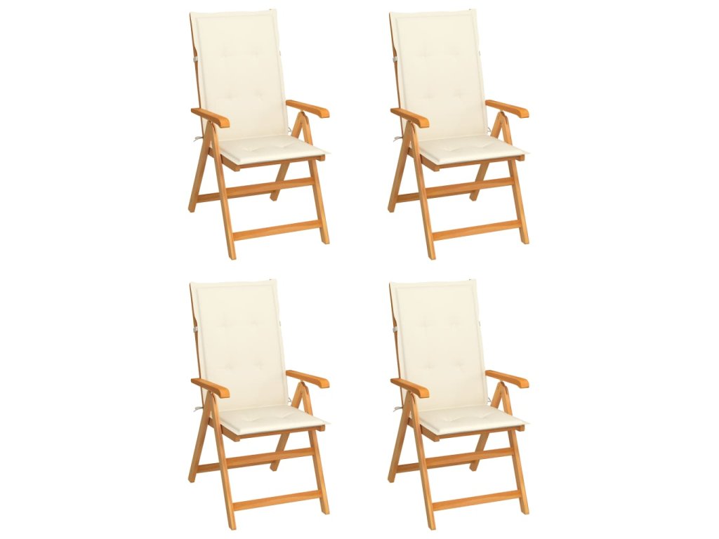 vidaXL Záhradné stoličky 4 ks, krémové podložky, tíkový masív