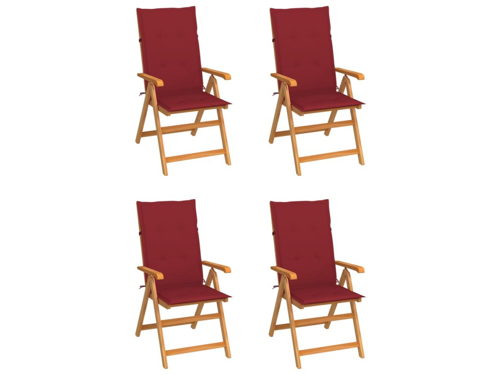 vidaXL Záhradné stoličky 4 ks, vínovo červené podložky, tíkový masív