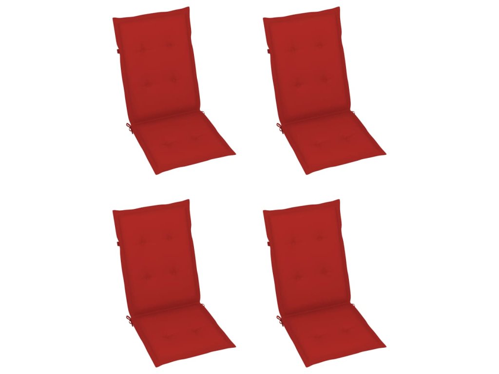 vidaXL Záhradné stoličky 4 ks s červenými podložkami tíkový masív