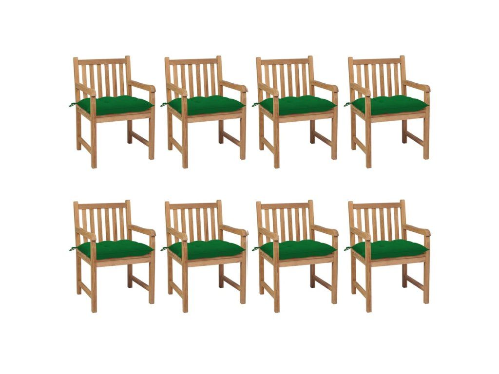 vidaXL Záhradné stoličky 8 ks so zelenými podložkami teakový masív