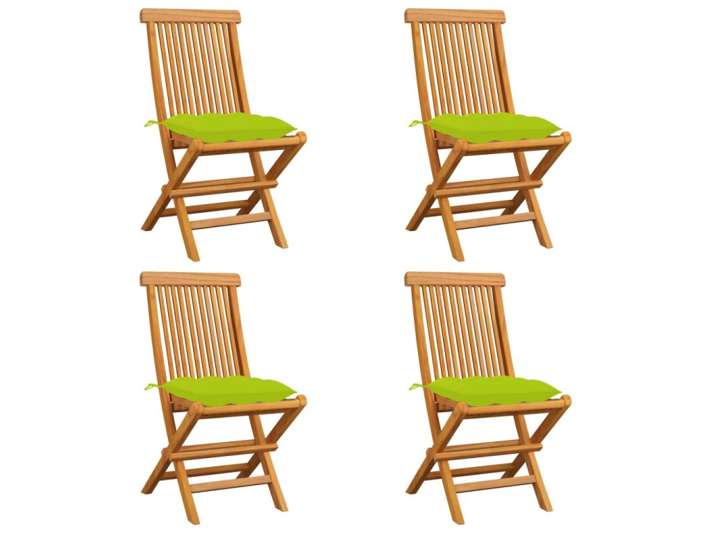 vidaXL Záhradné stoličky bledozelené podložky 4 ks tíkový masív