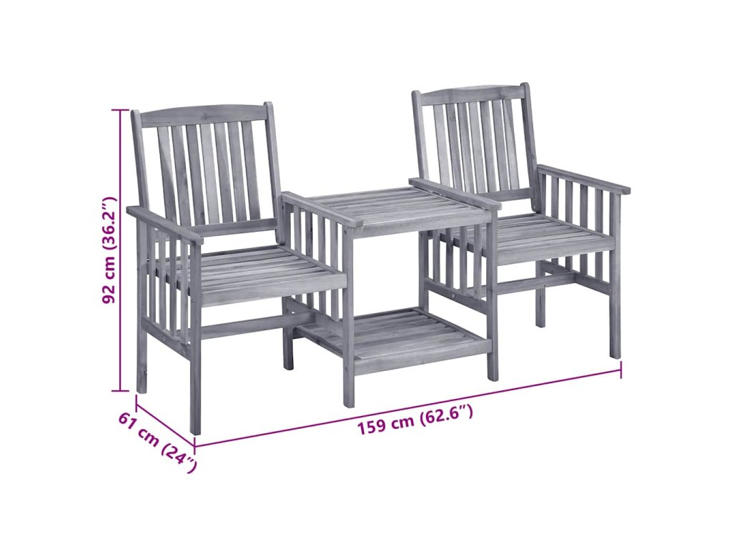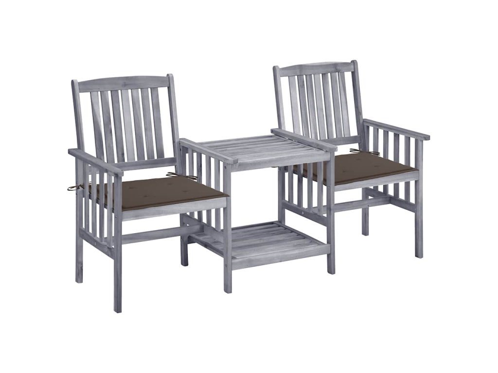 vidaXL Záhradné stoličky s čajovým stolíkom a vankúšmi akáciový masív