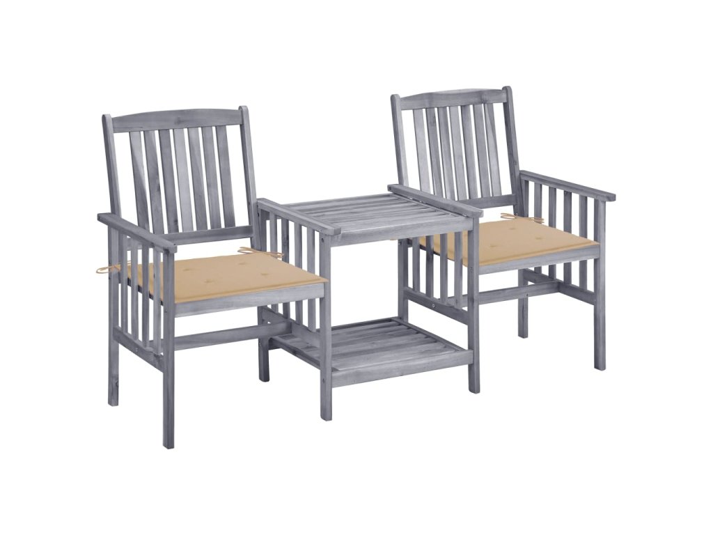 vidaXL Záhradné stoličky s čajovým stolíkom a vankúšmi akáciový masív