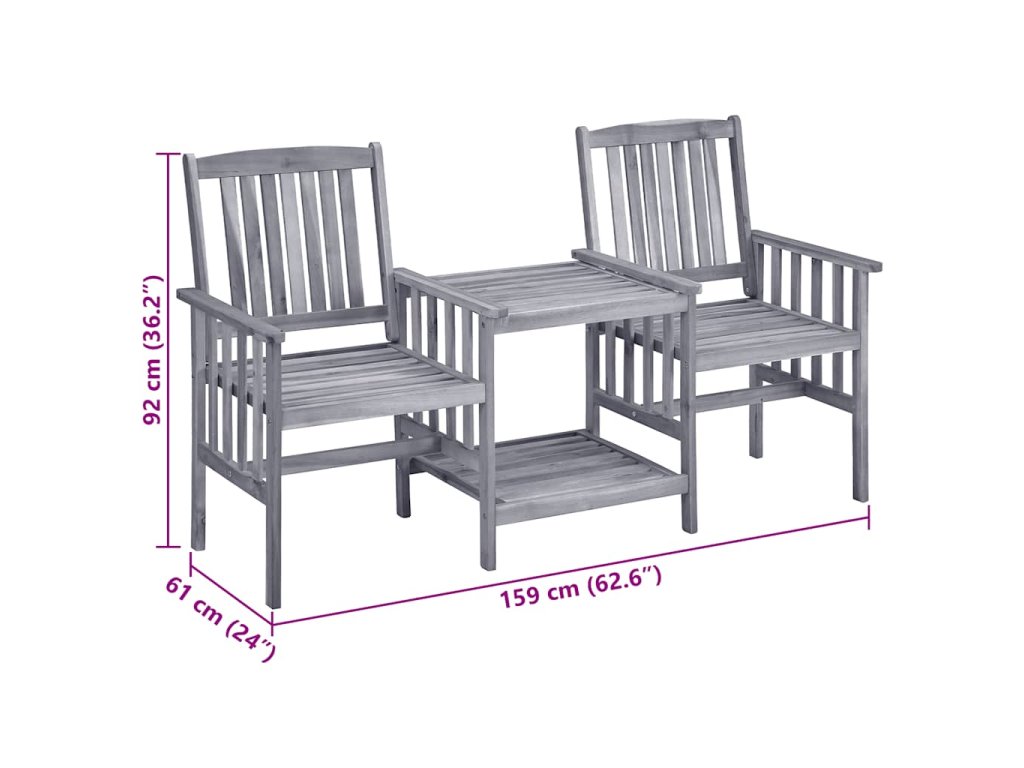 Stôl a stoličky sú vyrobené z masívneho akáciového dreva, vďaka čomu sú mimoriadne stabilné a pevné. Pevná stolová doska a spodná polica sú ideálne na uloženie vašich šálok, kníh a iných drobností. Operadlá a opierky na ruky zaisťujú príjemný zážitok zo sedenia. Vankúše navyše zvyšujú pohodlie. Každý vankúš obsahuje dve sady šnúrok, ktorými sa dajú pevne pripevniť o stoličku.