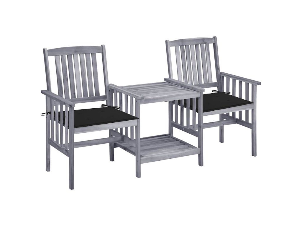 vidaXL Záhradné stoličky s čajovým stolíkom a vankúšmi akáciový masív