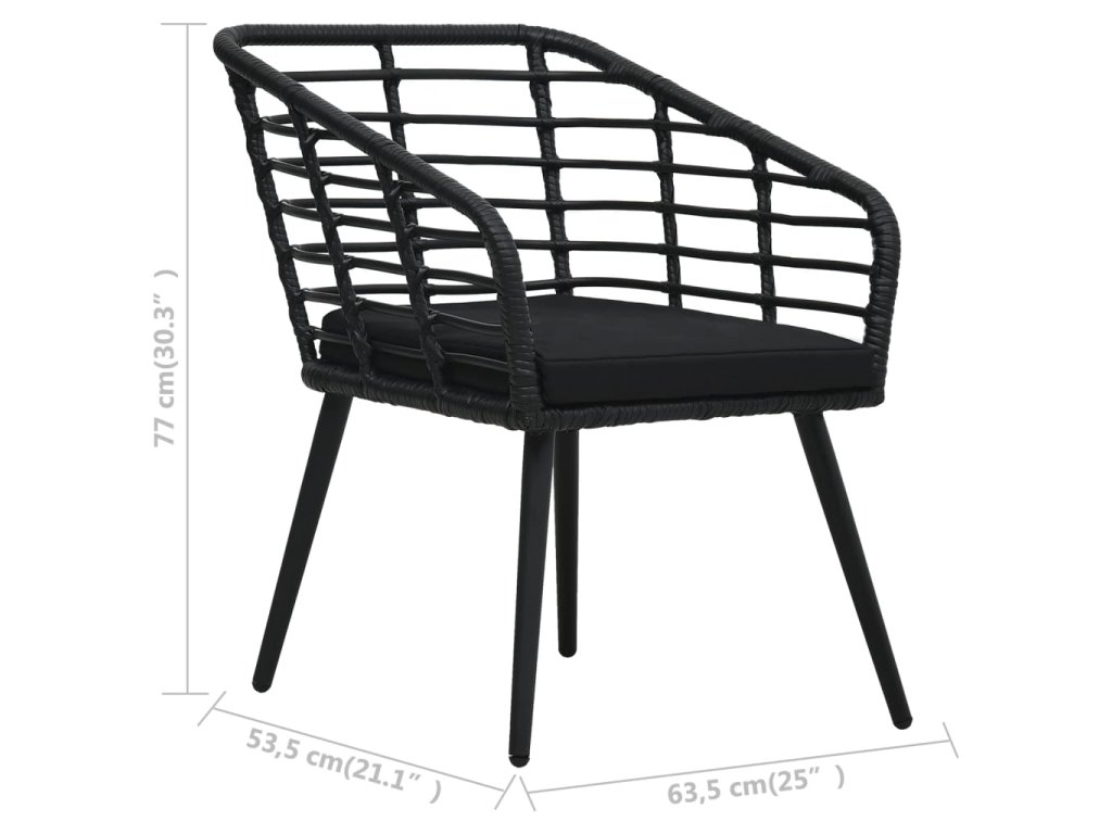vidaXL Záhradné stoličky s podložkami 2 ks, polyratan, čierne