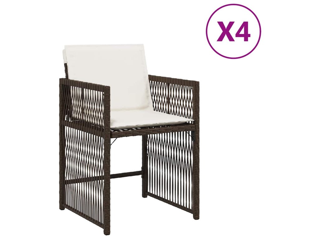 vidaXL Záhradné stoličky s podložkami 4 ks, hnedé, polyratan