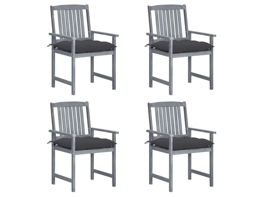 vidaXL Záhradné stoličky s podložkami 4 ks, sivé, akáciový masív