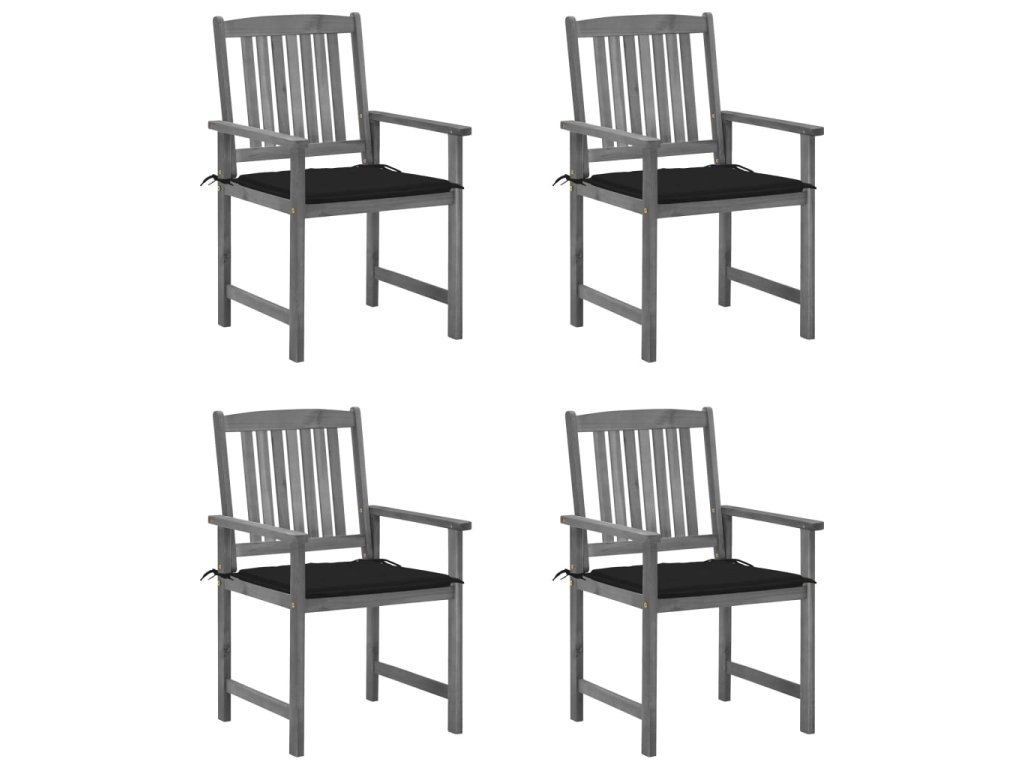 vidaXL Záhradné stoličky s podložkami 4 ks, sivé, akáciový masív