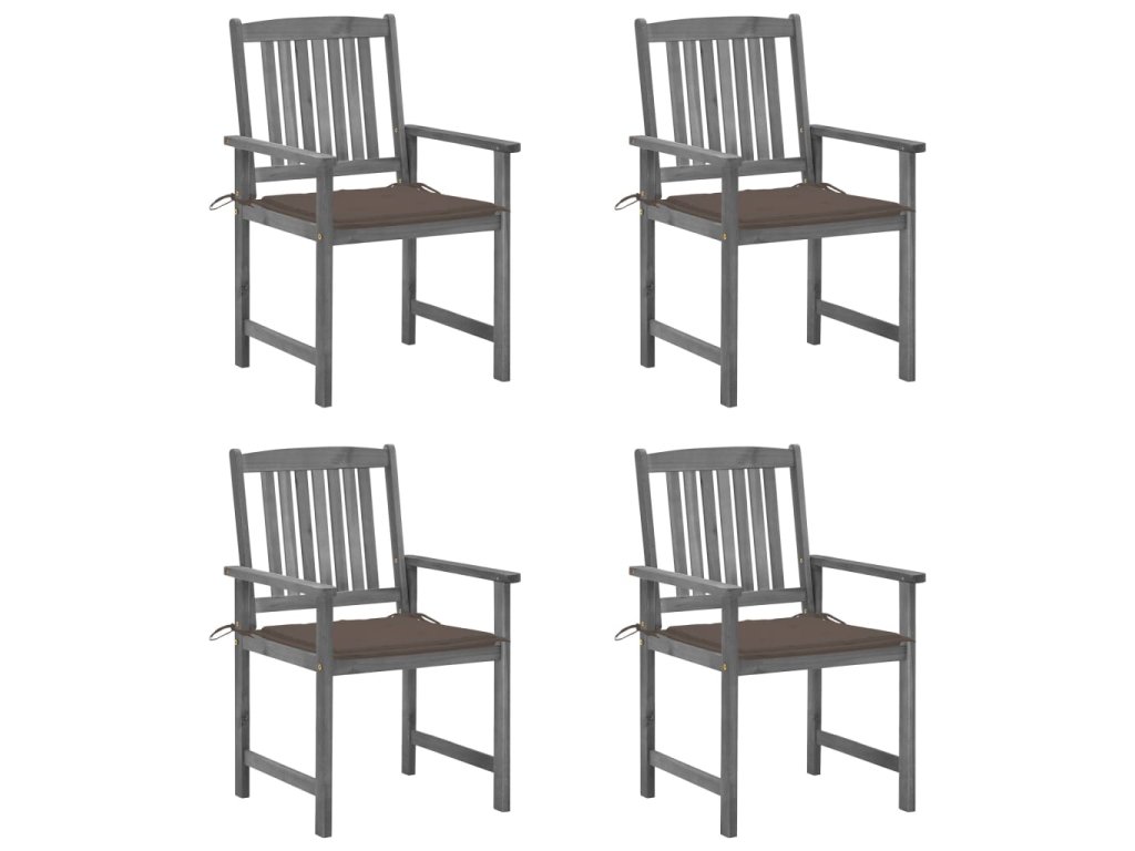vidaXL Záhradné stoličky s podložkami 4 ks, sivé, akáciový masív