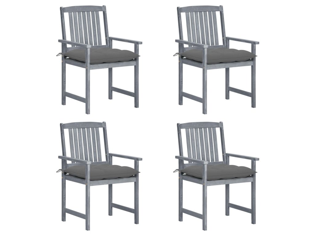 vidaXL Záhradné stoličky s podložkami 4 ks, sivé, akáciový masív