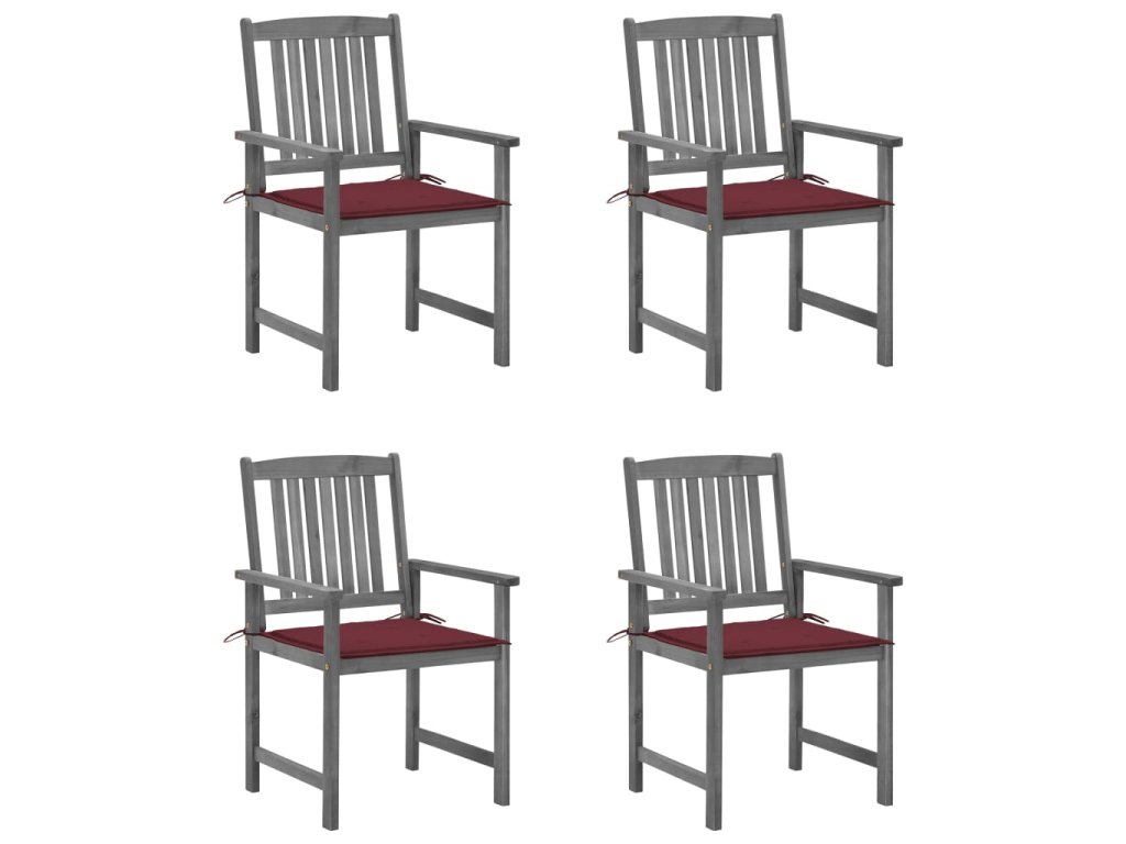 vidaXL Záhradné stoličky s podložkami 4 ks, sivé, akáciový masív
