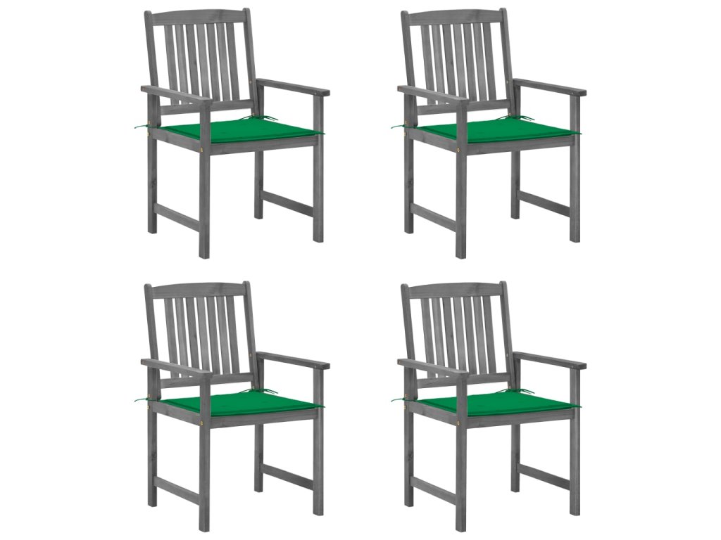 vidaXL Záhradné stoličky s podložkami 4 ks, sivé, akáciový masív