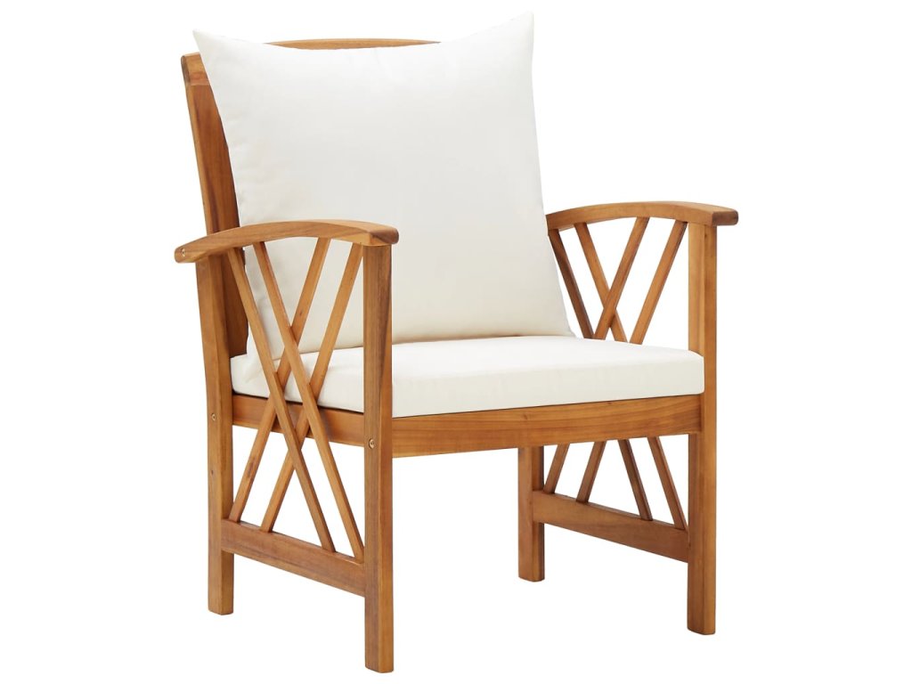 Záhradná stolička je vyrobená z masívneho akáciového dreva s olejovou povrchovou úpravou, vďaka čomu je stabilná a odolná. Vďaka remeselnému spracovaniu a krásnej drevenej štruktúre je každý kus nábytku jedinečný a mierne sa líši od iných kusov. Vankúš na sedadle a operadle dodá extra pohodlie počas sedenia.