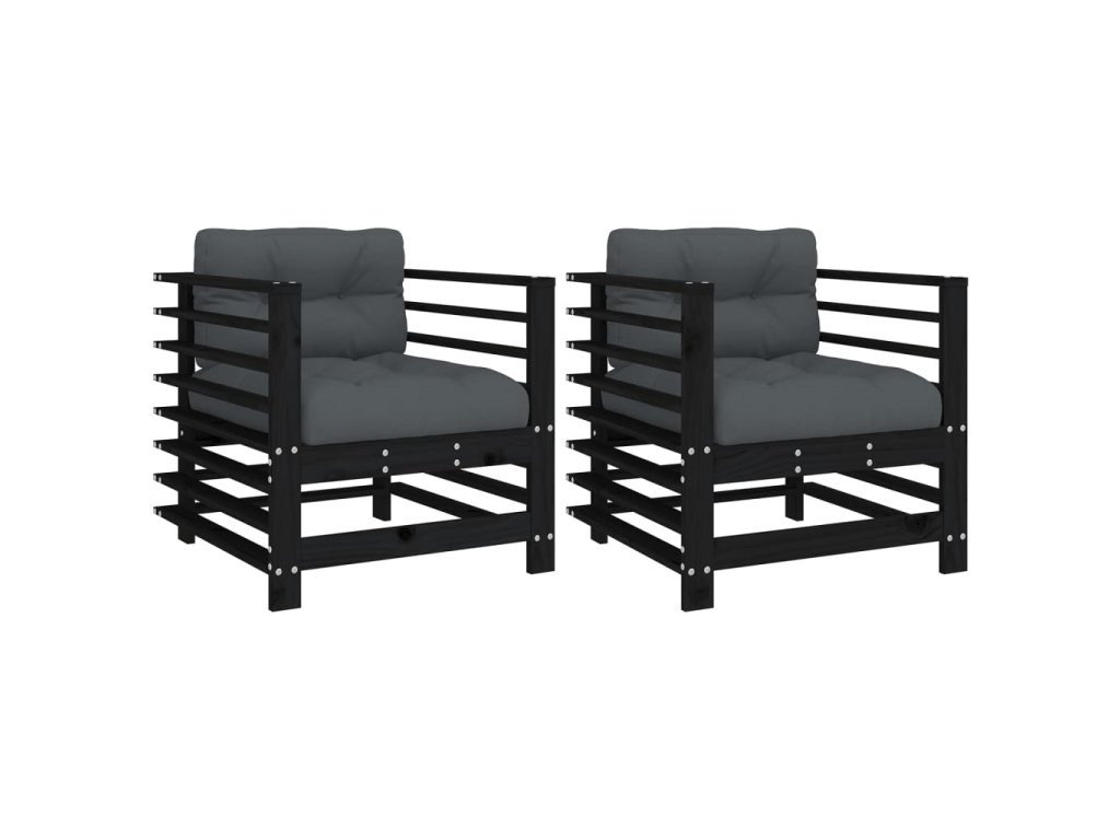 vidaXL Záhradné stoličky s vankúšmi 2 ks čierne borovicový masív