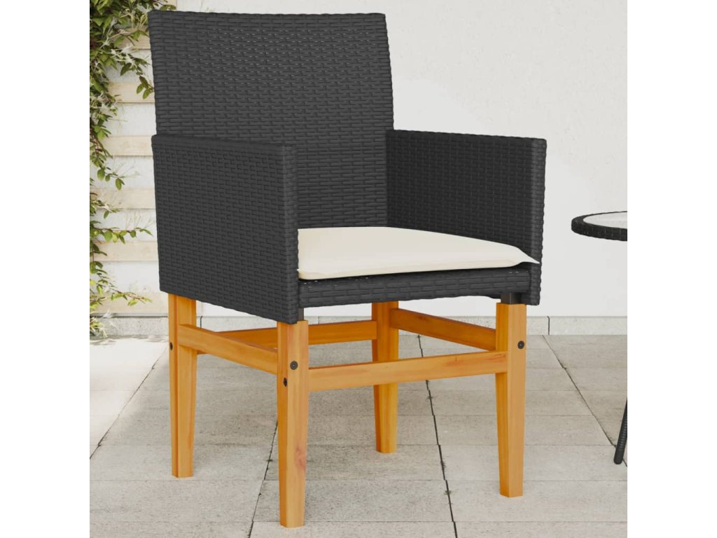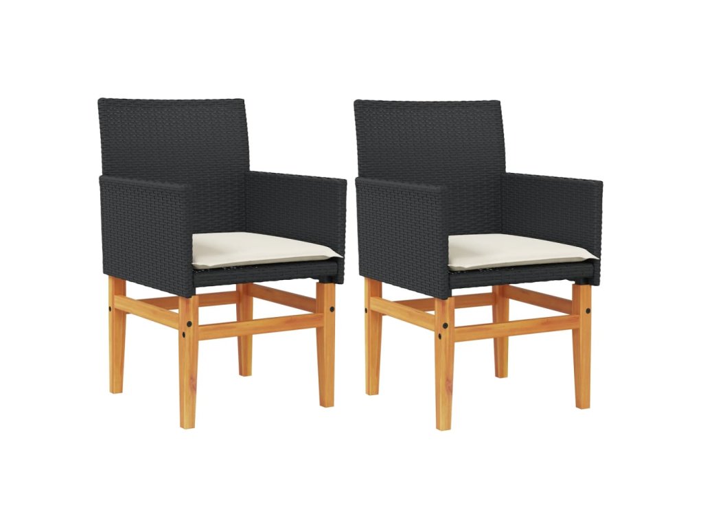 vidaXL Záhradné stoličky s vankúšmi 2 ks čierne polyratan a masív