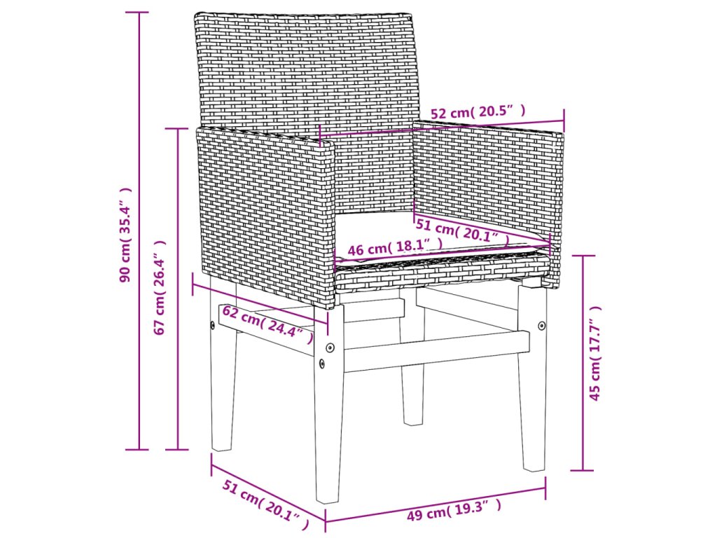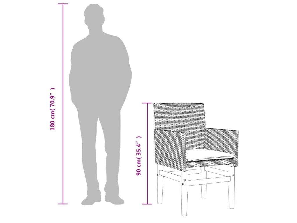 - Materiál: PE ratan, akáciový masív s prírodným olejovým náterom, oceľ s práškovou povrchovou úpravou