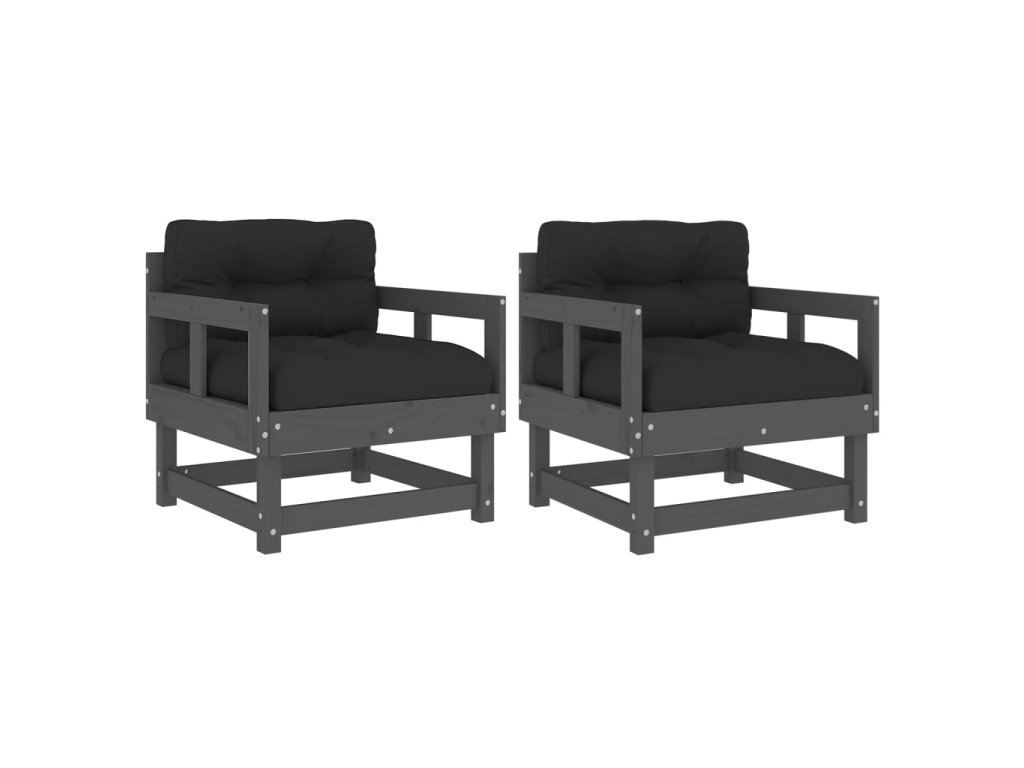 vidaXL Záhradné stoličky s vankúšmi 2 ks sivé borovicový masív