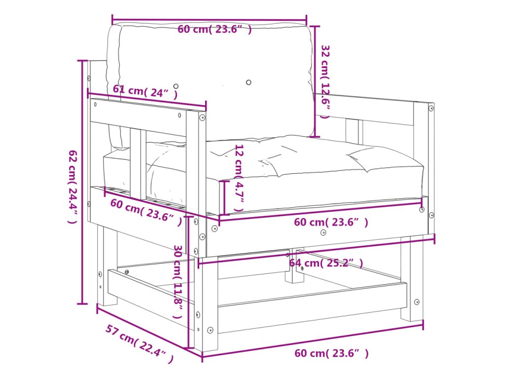 - Rozmery podložky na sedadlo: 60 x 60 x 12 cm (D x Š x V)