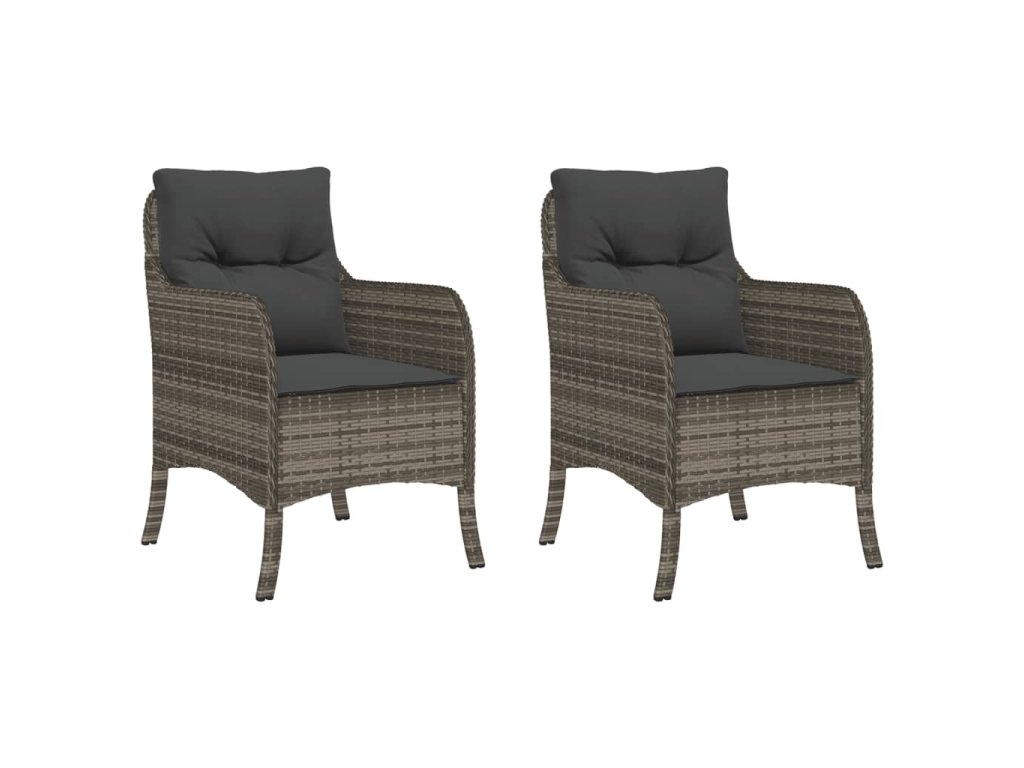 vidaXL Záhradné stoličky s vankúšmi 2 ks sivé polyratanové