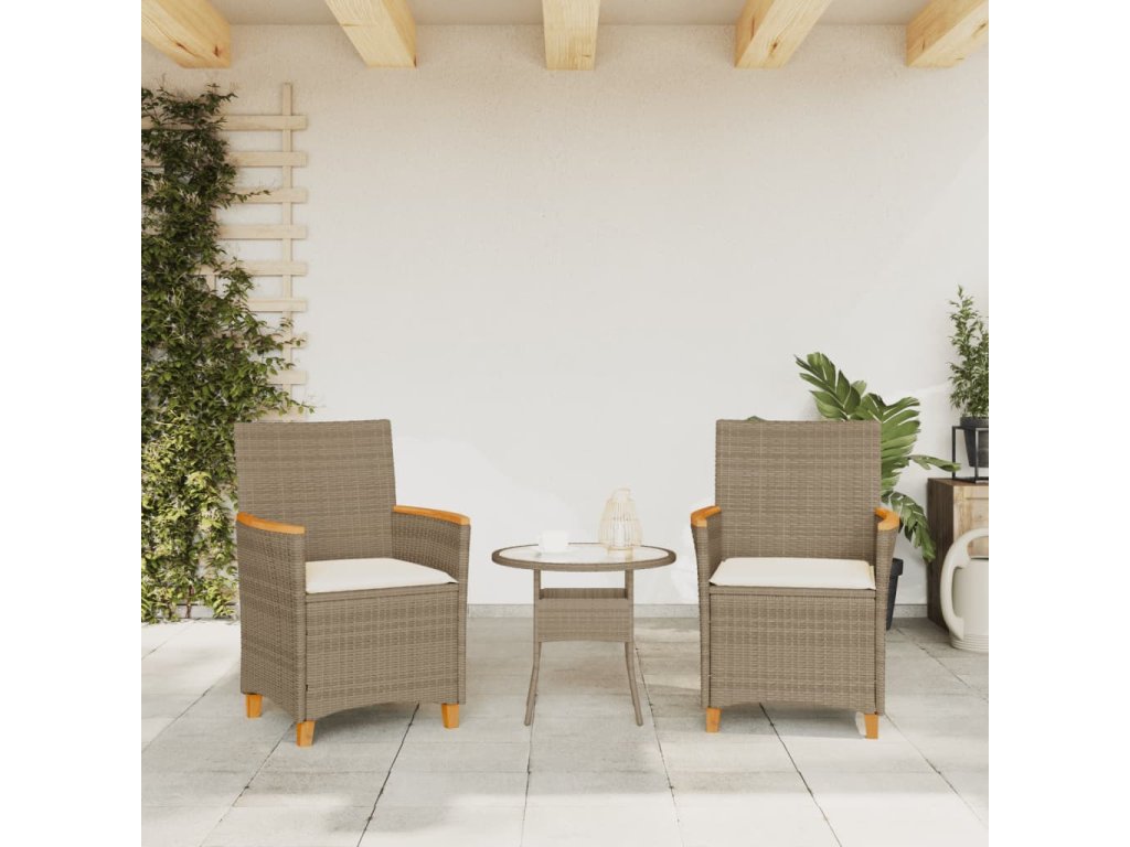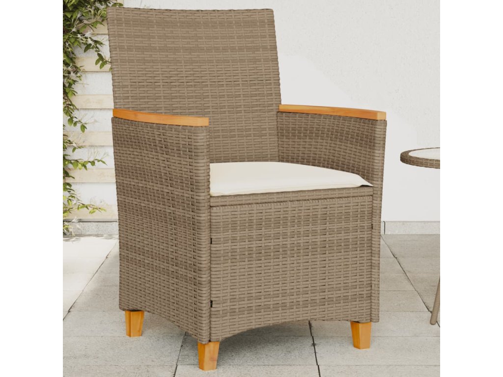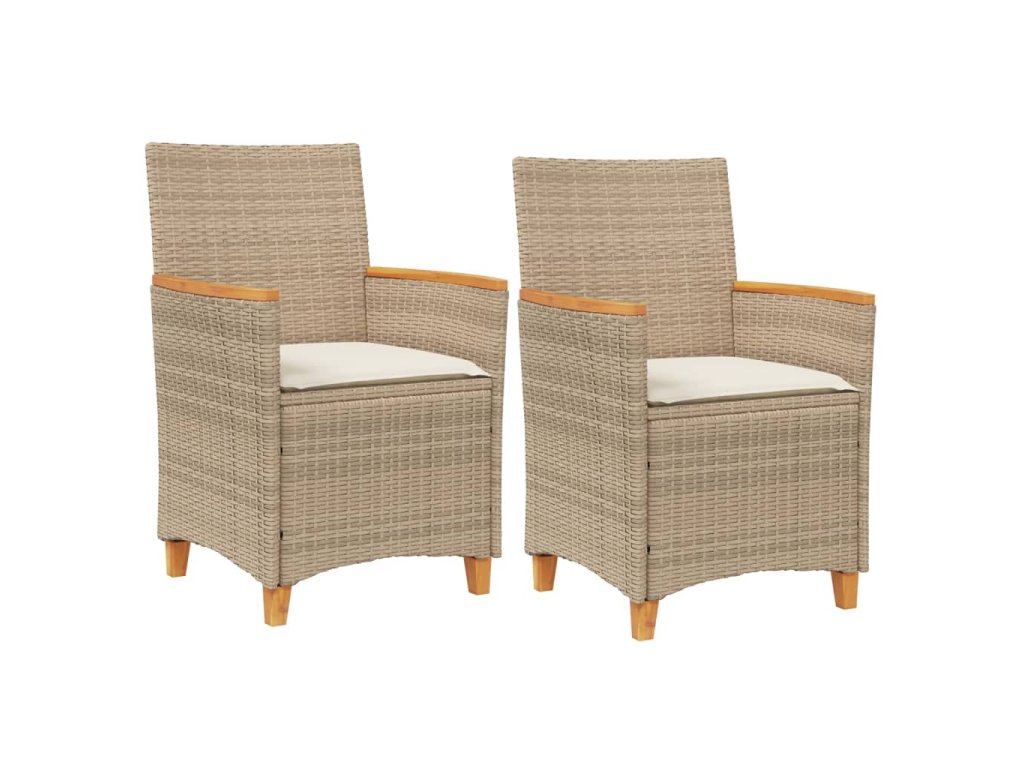 vidaXL Záhradné stoličky s vankúšmi 2ks béžové polyratan masívne drevo