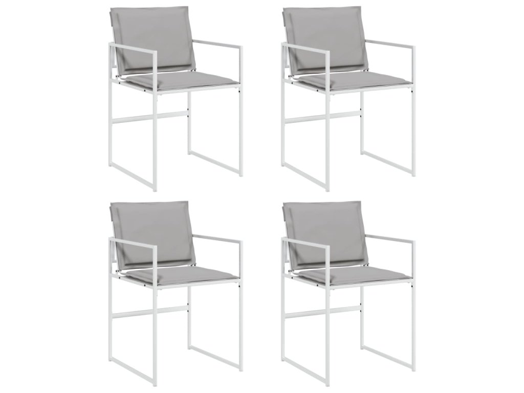 vidaXL Záhradné stoličky s vankúšmi 4 ks biele oceľ a textilen