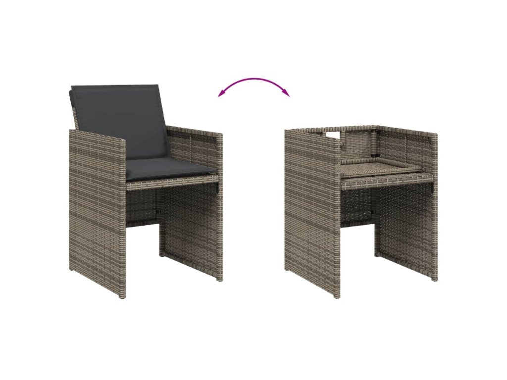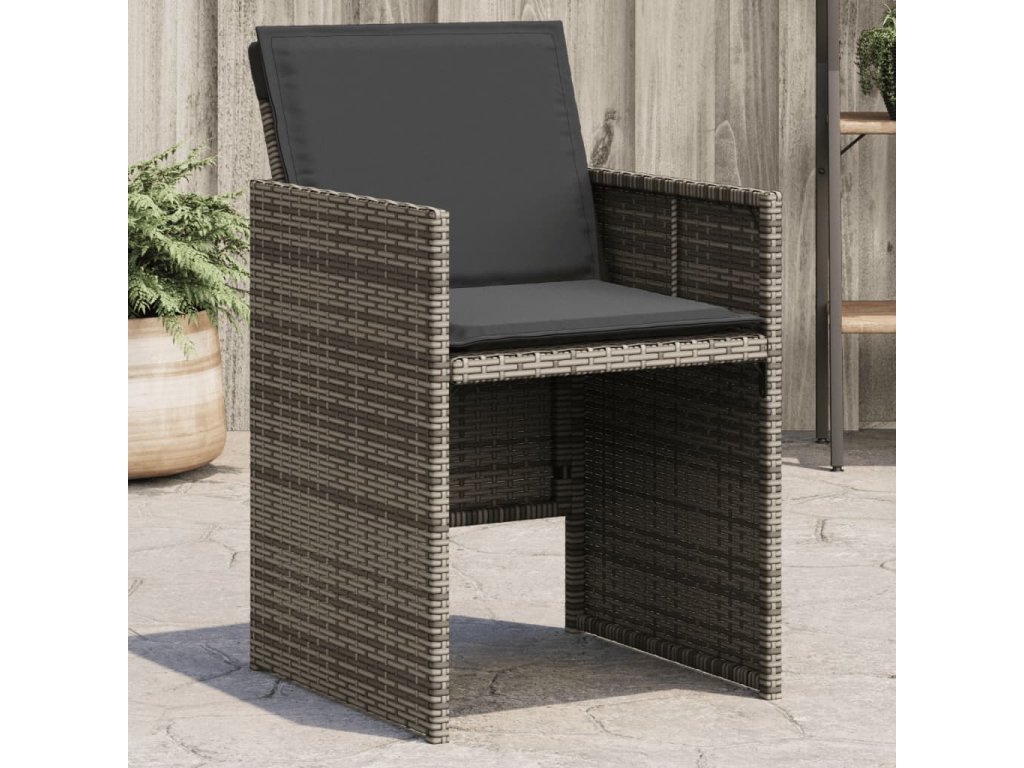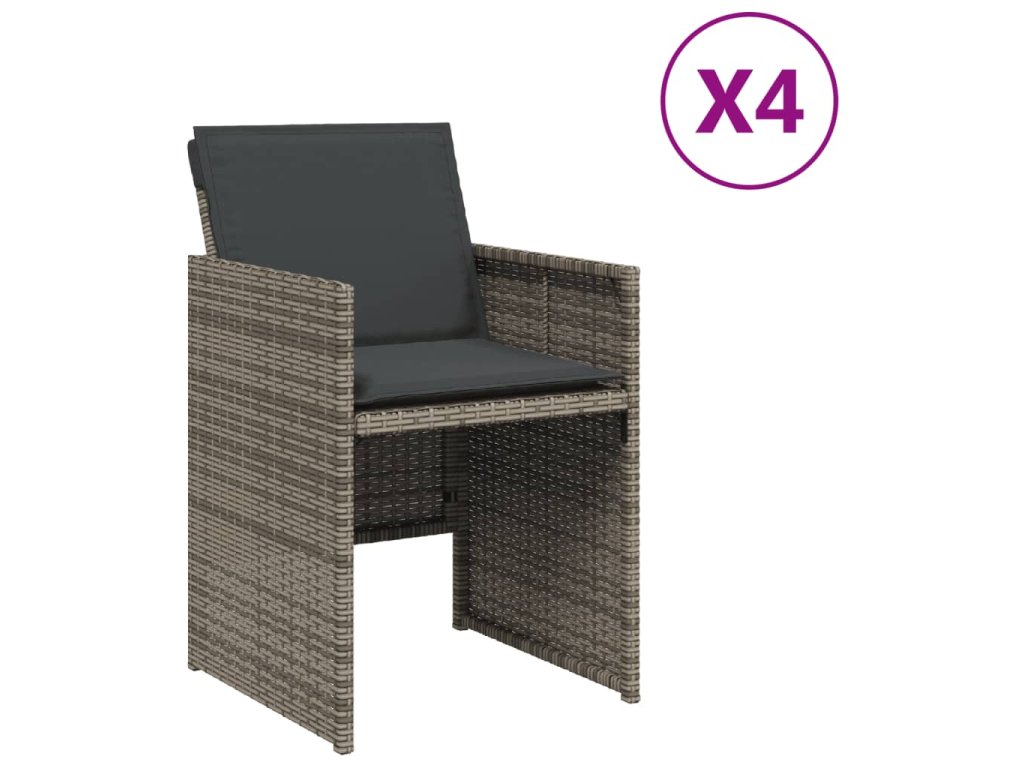 vidaXL Záhradné stoličky s vankúšmi 4 ks sivé polyratanové