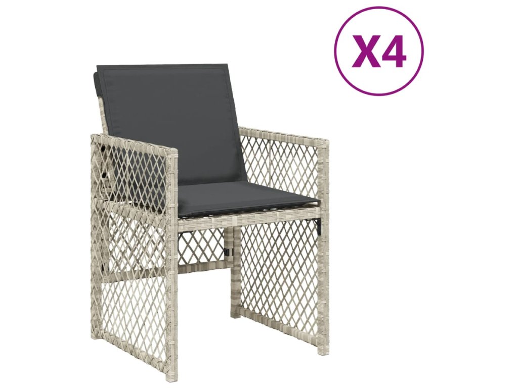 vidaXL Záhradné stoličky s vankúšmi 4 ks svetlosivé polyratan
