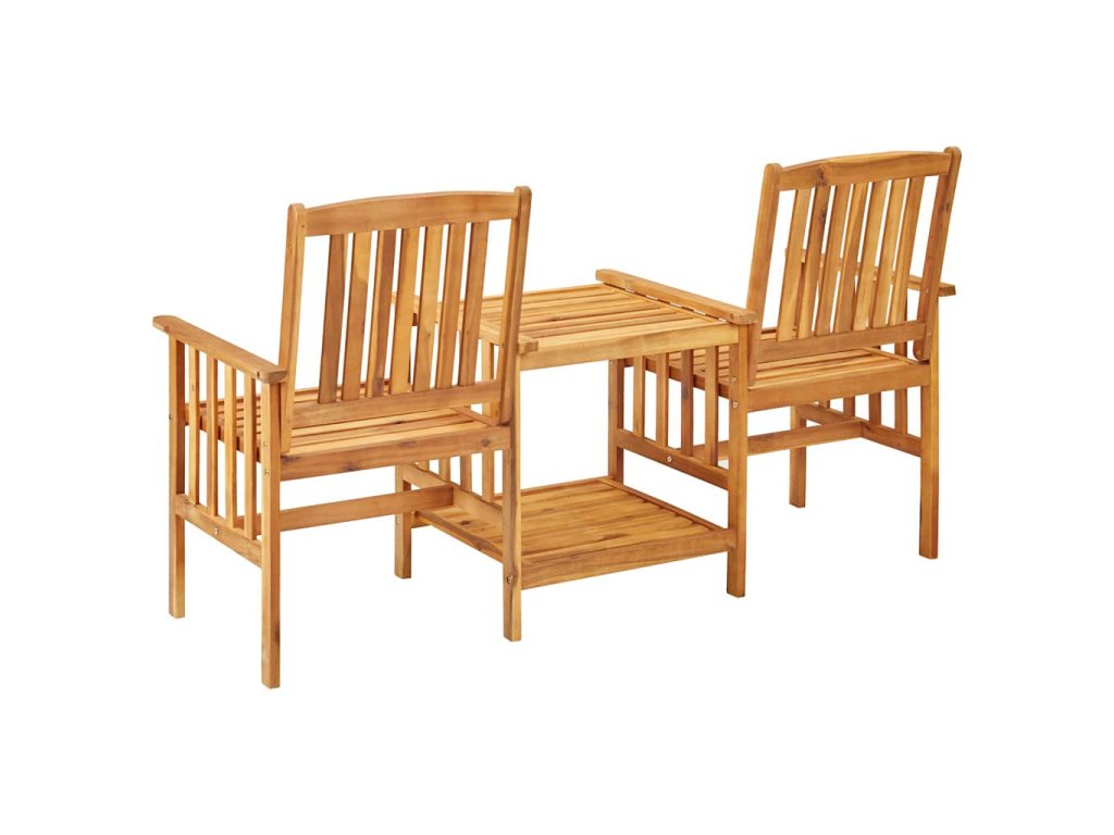 Stôl a stoličky sú vyrobené z masívneho akáciového dreva s olejovou povrchovou úpravou, čo im dodáva mimoriadnu stabilitu a odolnosť. Robustná stolová doska a spodná polica sú ideálne na položenie pohárov, kníh a iných drobností. Operadlá a opierky na ruky zaisťujú pokojný zážitok počas sedenia. Nábytok sa navyše vďaka olejovej povrchovej úprave ľahko čistí vlhkou handričkou. Vankúše zvyšujú pohodlie a každý vankúš je vybavený dvoma sadami šnúrok, ktorými sa pevne pripevnia k bistro súprave.