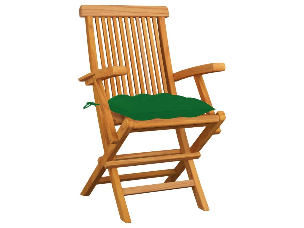 vidaXL Záhradné stoličky so zelenými podložkami 3 ks tíkový masív