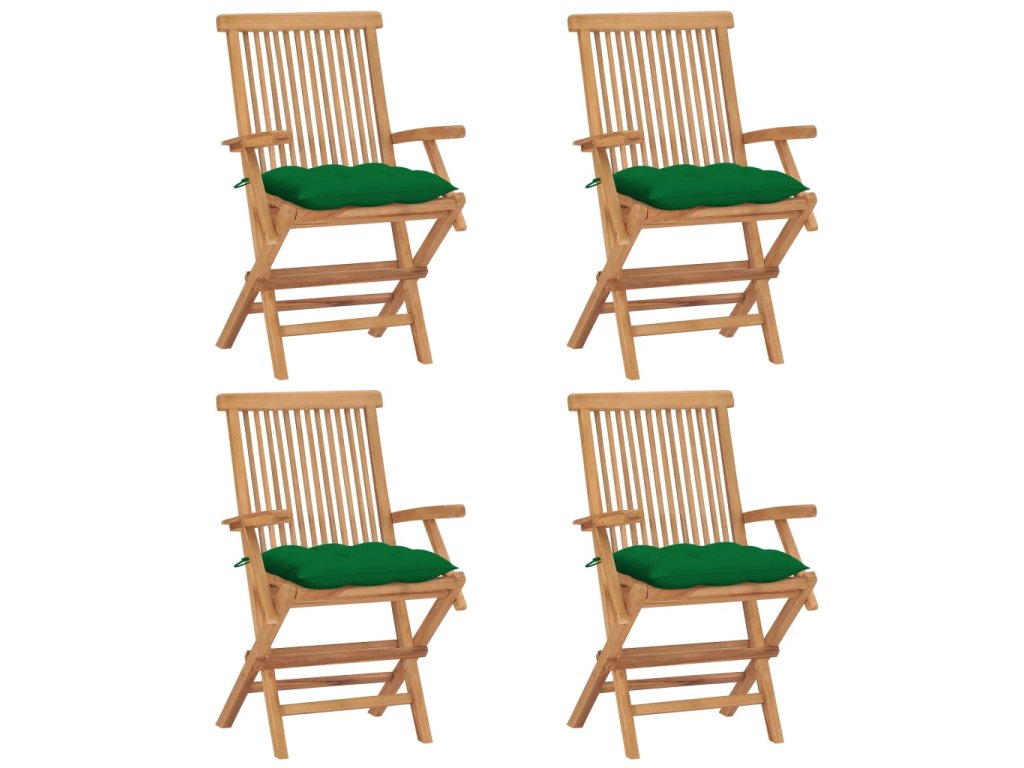 vidaXL Záhradné stoličky so zelenými podložkami 4 ks tíkový masív