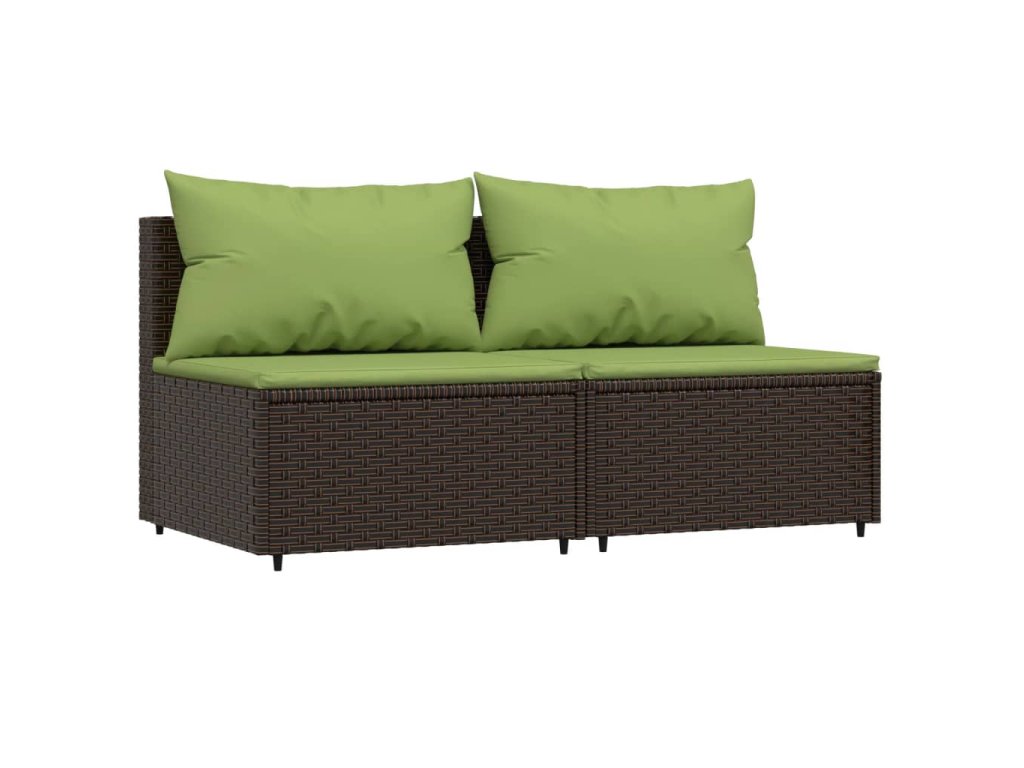 vidaXL Záhradné stredové pohovky s podložkami 2 ks hnedé polyratan