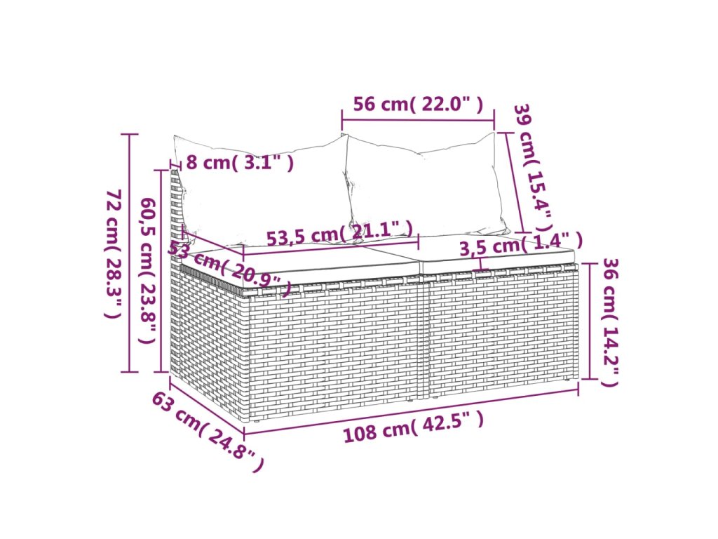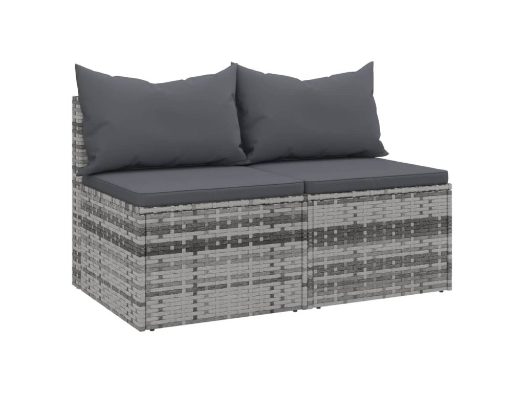 vidaXL Záhradné stredové pohovky s vankúšmi 2 ks sivé polyratan