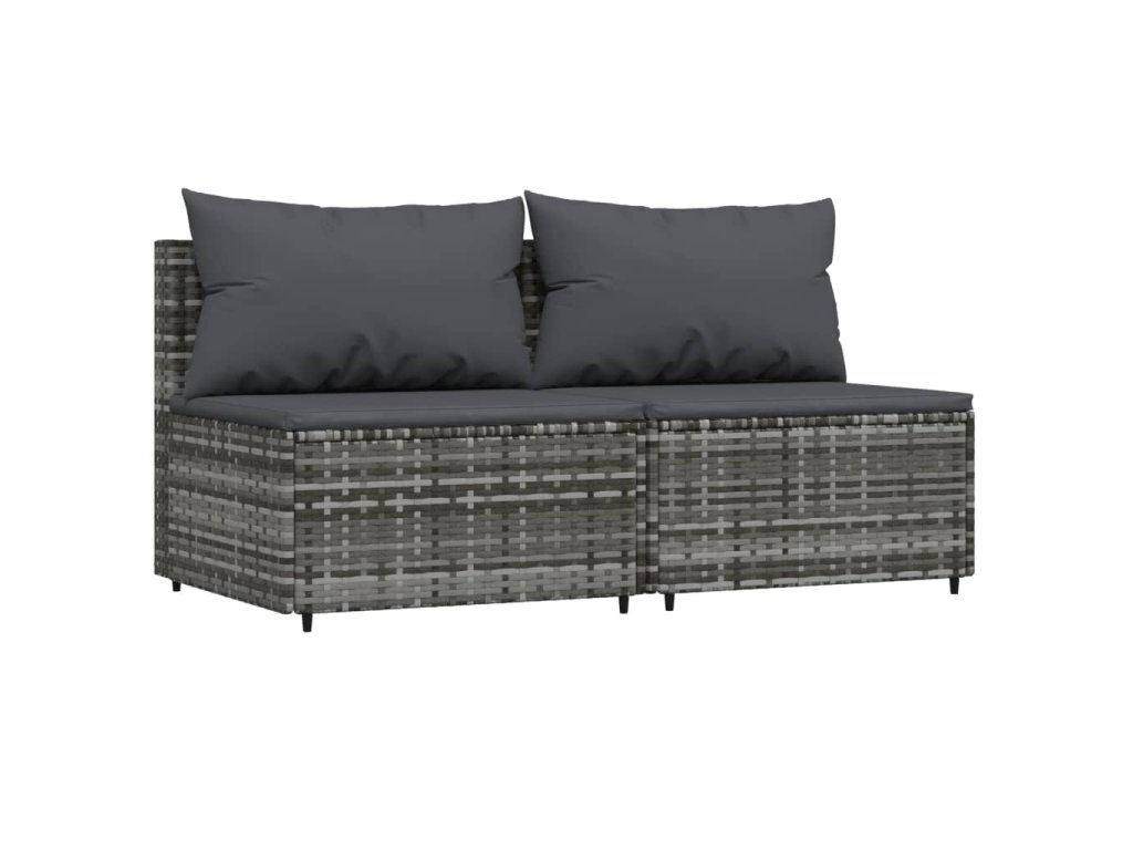 vidaXL Záhradné stredové pohovky s vankúšmi 2 ks sivé polyratan
