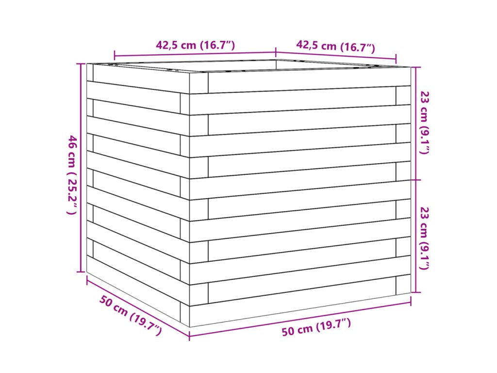 vidaXL Záhradný kvetináč 50x50x46 cm masívna borovica