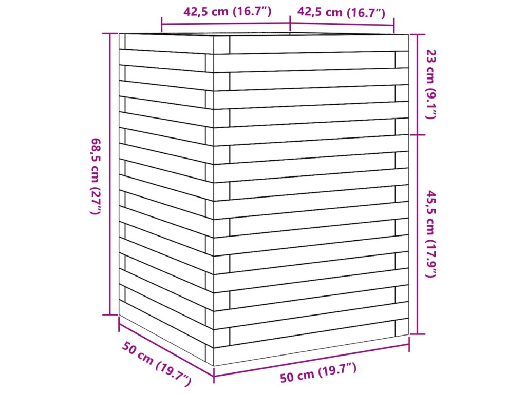 vidaXL Záhradný kvetináč 50x50x68,5 cm impregnovaná borovica
