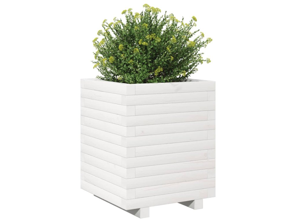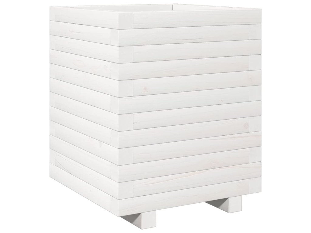 vidaXL Záhradný kvetináč biely 40x40x49,5 cm masívna borovica