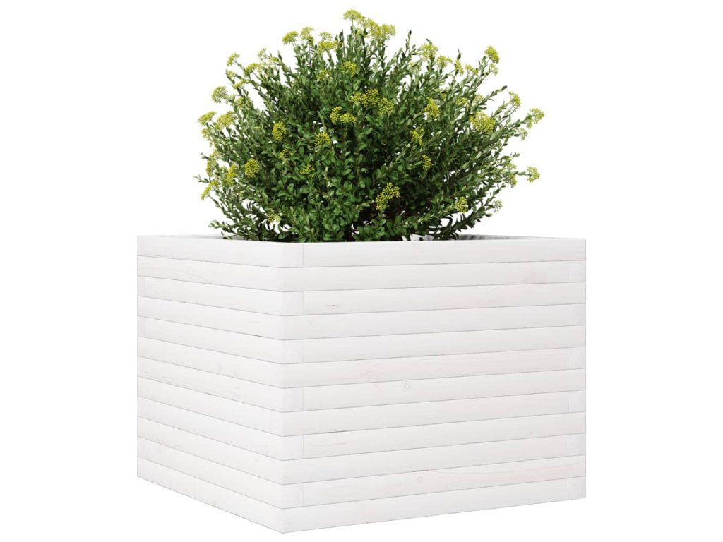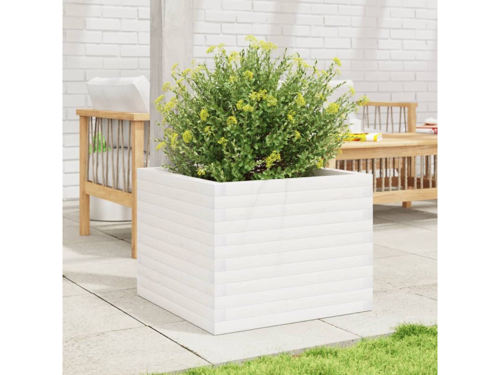 vidaXL Záhradný kvetináč biely 60x60x46 cm masívna borovica