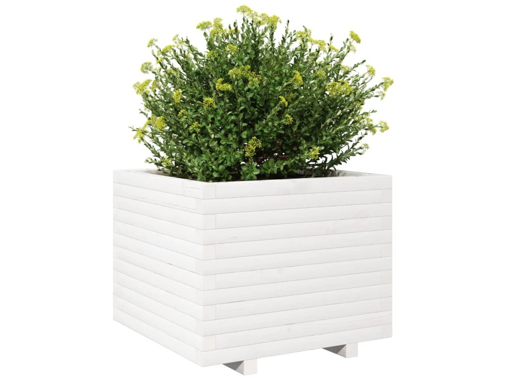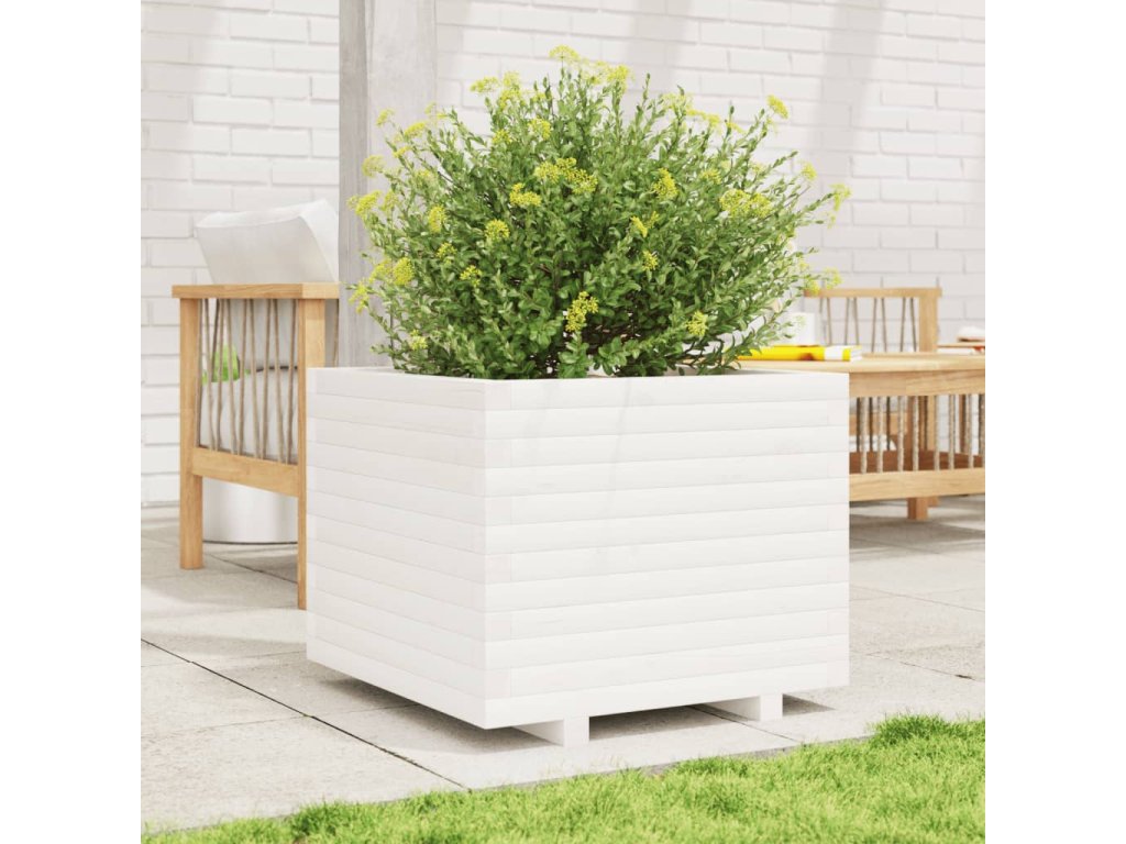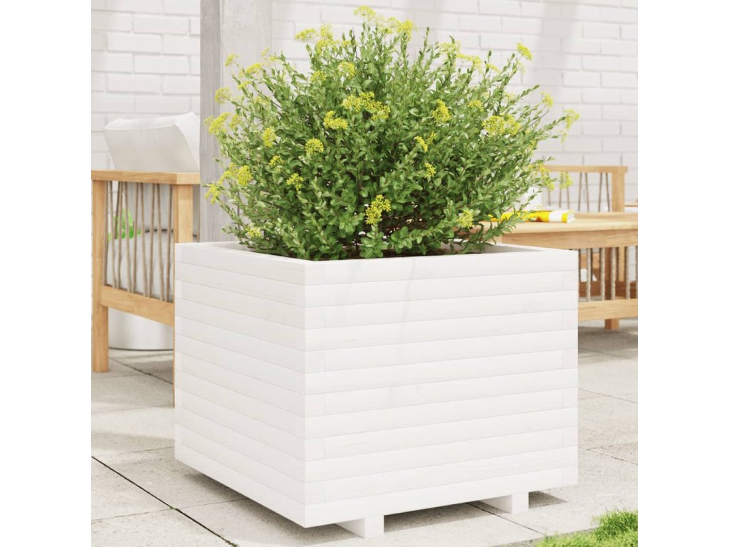 vidaXL Záhradný kvetináč biely 60x60x49,5 cm masívna borovica