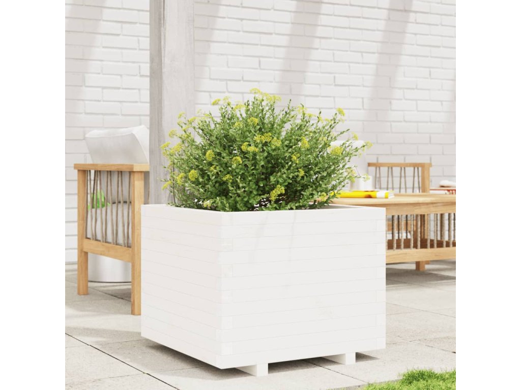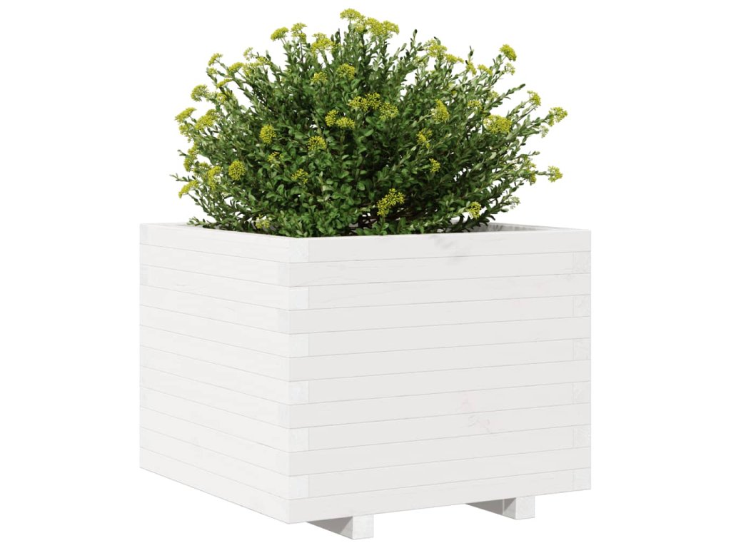 vidaXL Záhradný kvetináč biely 60x60x49,5 cm masívna borovica