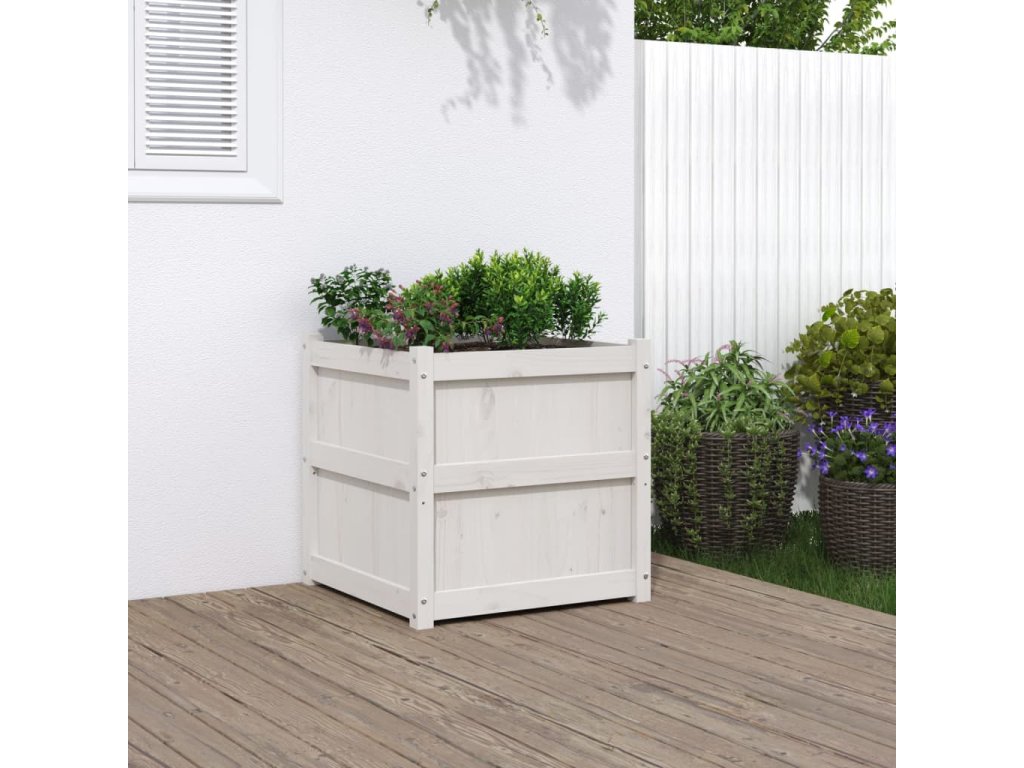 vidaXL Záhradný kvetináč biely 60x60x60 cm masívna borovica