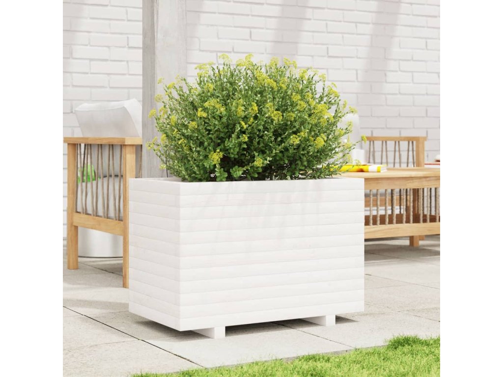 vidaXL Záhradný kvetináč biely 70x40x49,5 cm borovicový masív