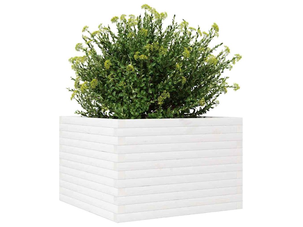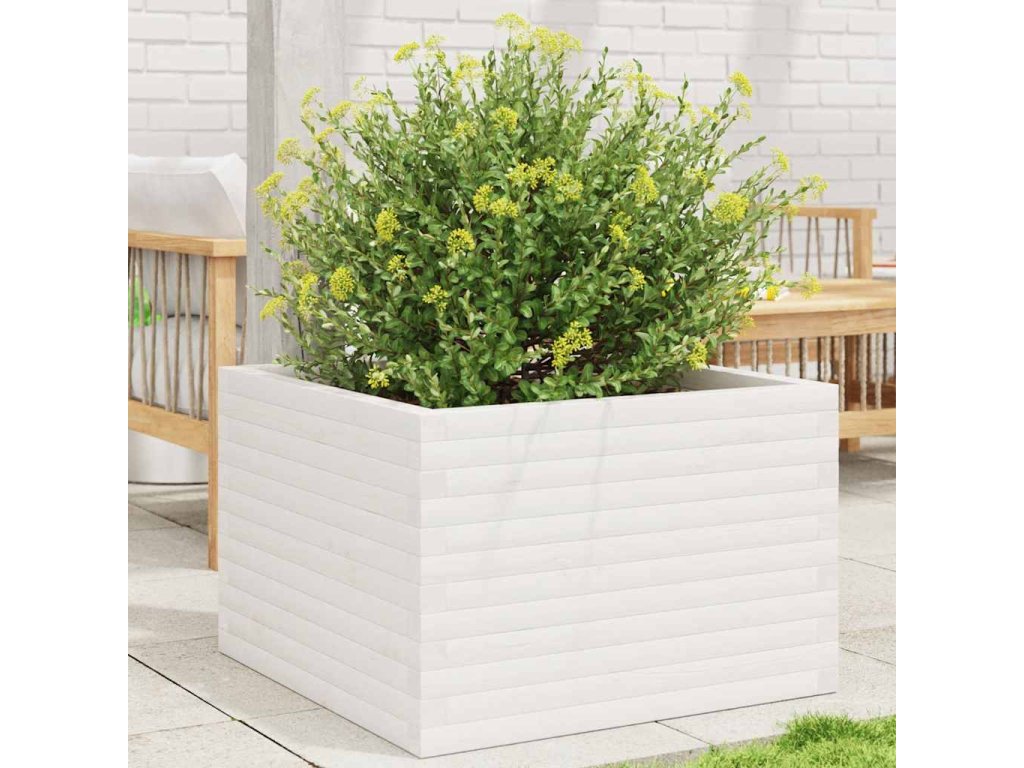 vidaXL Záhradný kvetináč biely 70x70x46 cm borovicový masív