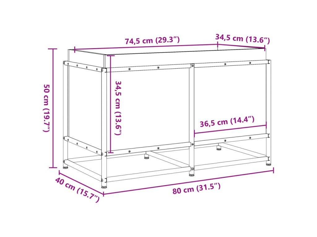 - Vnútorné rozmery: 74,5 x 34,5 x 34,5 cm (Š x H x V)